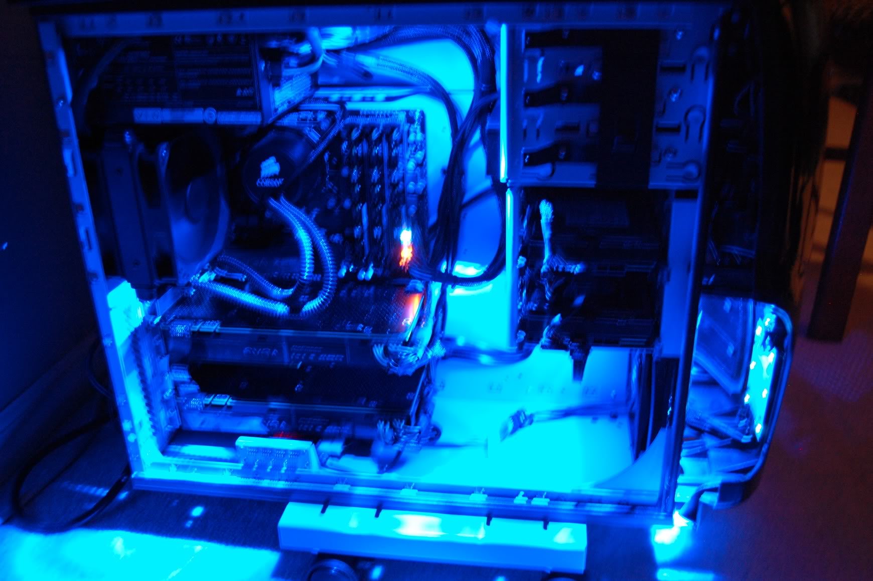 I really loved this computer. Slowly over time I sold off old parts to fund new parts, drives filled up and were replaced, eventually the case power button and lighting stopped working and it was replaced with something more modern. But I will always fondly remember this first build and the time I had with it. Enjoy the some more photos below, including some awesome 2010 blue LED glow.